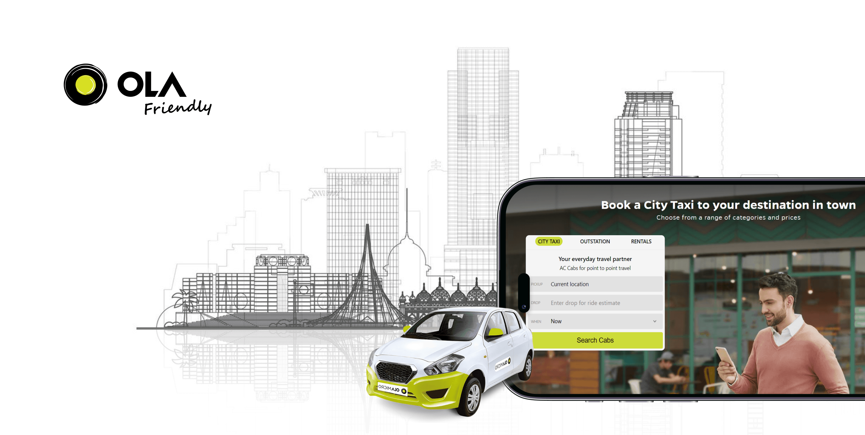 To design a new feature for a pre-existing app we have to first understand the UI for the app so let us look into it. The purpose of this exercise is simply to keep the design strategy consistent and similar to the current Ola app.